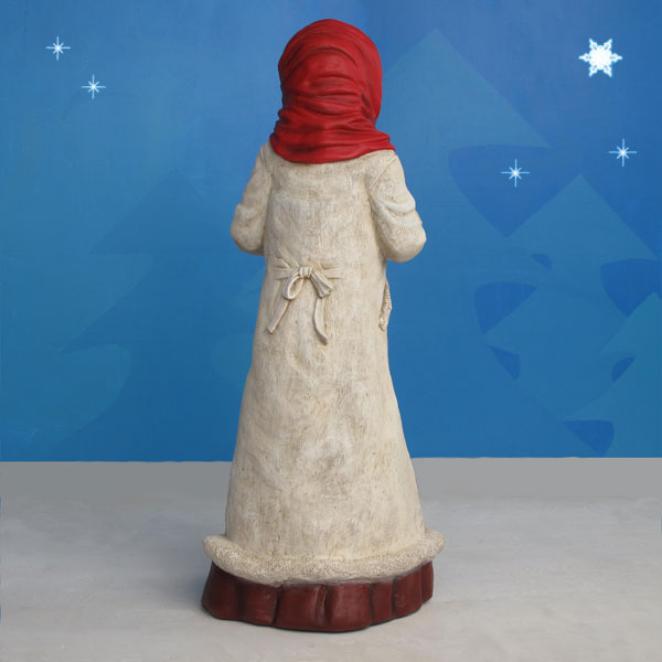 Make sure product is not in standing water, or covered with snow as this will soften paint and cause paint to separate from product. Clean product only if absolutely necessary. Make sure figures are completely dry. Dust with a soft cloth or feather duster. Where necessary, use a damp cloth. DO NOT use soap, chemicals, detergents or hoses. Store in the shipping cartons in a dry location. When setting up product make sure each figure is stable and will not be blown over by the wind. In windy areas use a wood stake behind each tall figure and secure to the figure with strong fishing line or wire. NOTE: Products displayed outdoors may require paint touchups from time to time.