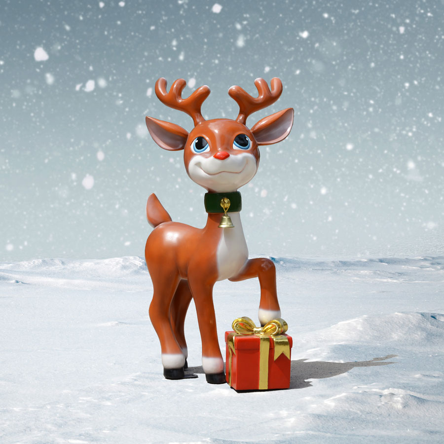 Inspire visitors of all ages with Heinimex's adorable Christmas Reindeer. Featuring a functional bell collar, a Christmas gift box and a sweet facial expression, this fiberglass reindeer is sure to steal the show. It's crafted from long-lasting, chip-resistant fiberglass material that's then finished with a protective topcoat to preserve the paint.