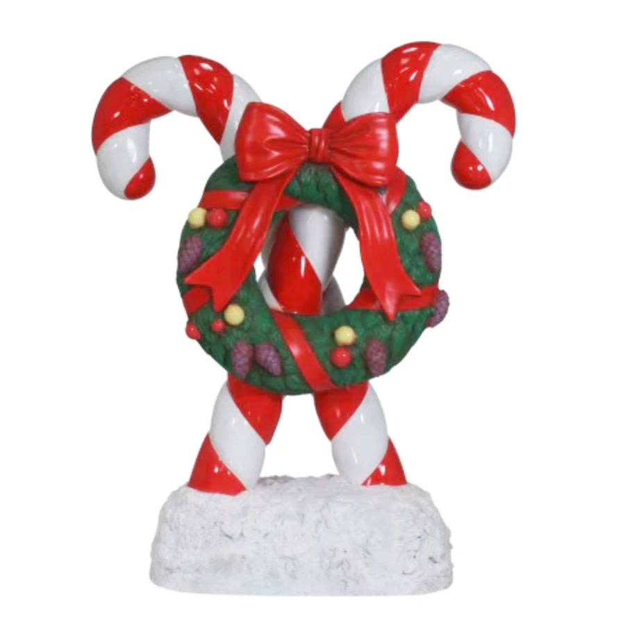 Our crossed candy canes with red bow and Christmas wreath stands 40 inches high. See the delight in children's eyes as they enter your exquisitely decorated winter wonderland - bring back the magic that makes them believe that just about anything possible during the Christmas season! This premium decoration is made from chip-resistant, durable fiberglass and is guaranteed to provide wonder and delight for many, many years.