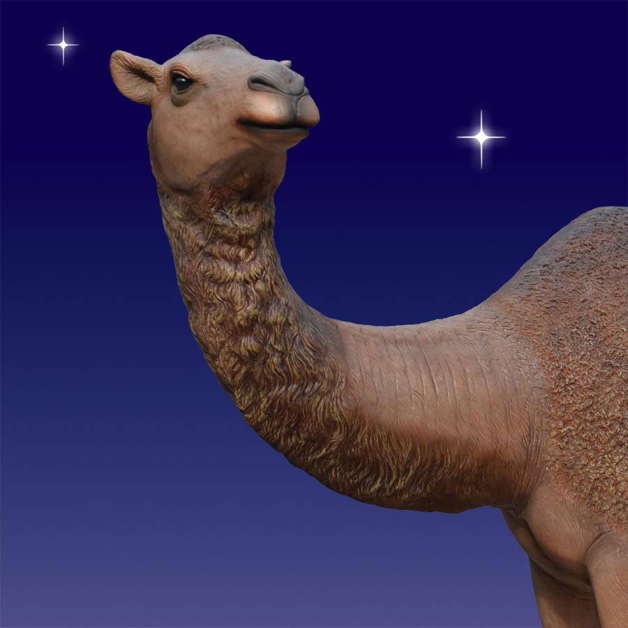 The Huge Standing Female Camel by Heinimex is the perfect piece for completing your Nativity set. The camel is depicted in a standing position, with her head raised to look at those that had come to witness the birth of Jesus. The camel is designed with one hump and is painted with a rich brown color. The figure measures 84.25 inches tall and is part of the Christmas Night Nativity Collection. Camels are amongst the animals cited in the Bible as being present at the birth of Jesus.