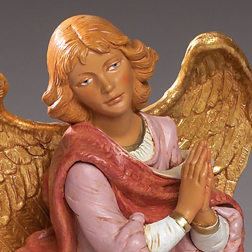 Shout the good news from the rooftops with this elegant 18-inch scale Fontanini Masterpiece Collection Kneeling Angel from the popular Fontanini Masterpiece Collection. Each element of this exceptional angel nativity figure has been handcrafted by Italian artisans for quality that will last season after season. The Kneeling Angel is also sold as part of a complete 16-piece set with a stable from Christmas Night Inc.