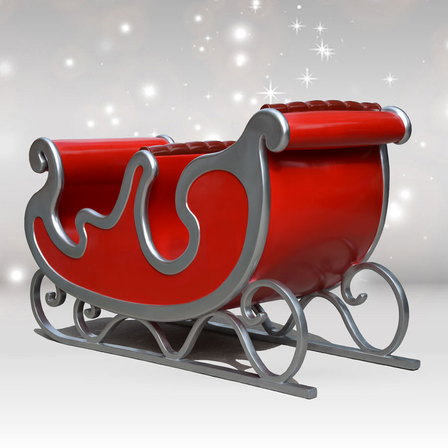 Alone, or paired with the other pieces from our Christmas Night Santa Sleigh Collection, this 91-inch red sleigh stands out in vibrant, festive color against the white backdrop of a winter wonderland. Deluxe four seater holds up to four people (700 lb capacity). Intricate silver details make this sleigh pop - use our quality fiberglass sleigh as a centerpiece for your residential, community or business Christmas decorations. You can't go wrong with the high-quality, chip-resistant veneer and the long-lasting quality of this sleigh for your indoor or outdoor Christmas décor.