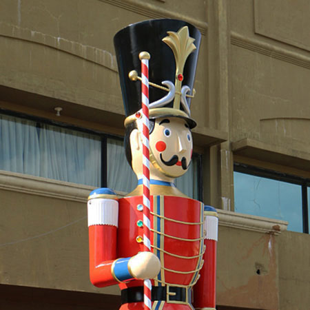There's making a statement, and there's making a statement. A 16-foot giant Christmas toy soldier with a baton will be the first thing people notice when it stands in front of your corporate headquarters, mall, event center or amusement park. The super-size toy soldier wears a full uniform with a red overcoat, gold-gilded buttons, pants and boots, plus a striped baton for guarding the holiday spirit. It's made of durable fiberglass for outdoor installations and is manufactured by Heinimex based on a Christmas Night Inc. design.