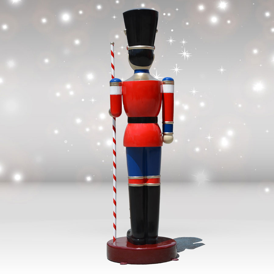 Every large display needs a good guard, and by adding this 10-foot giant toy soldier with baton, your Christmas décor will become larger than life. Christmas Night toy soldier statues have a detailed design right down to the gold-gilded buttons and tasseled boots. This giant Christmas soldier has a red and white striped baton in his left hand for placement on the matching side as you face an entryway. The fiberglass construction means he can lead other figurines on an imaginary parade for years to come.