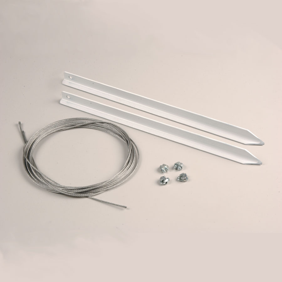 Recommended for all ground-mounted holiday displays, this 10-foot Holiday Lighting Specialists Guy Wire Kit safely secures your free-standing LED displays into the ground. Most of Holiday Lighting Specialists' small light displays come with included guy wire kits, but large displays typically do not (including items 78721). Be sure to check each item's product details for the quantity required.