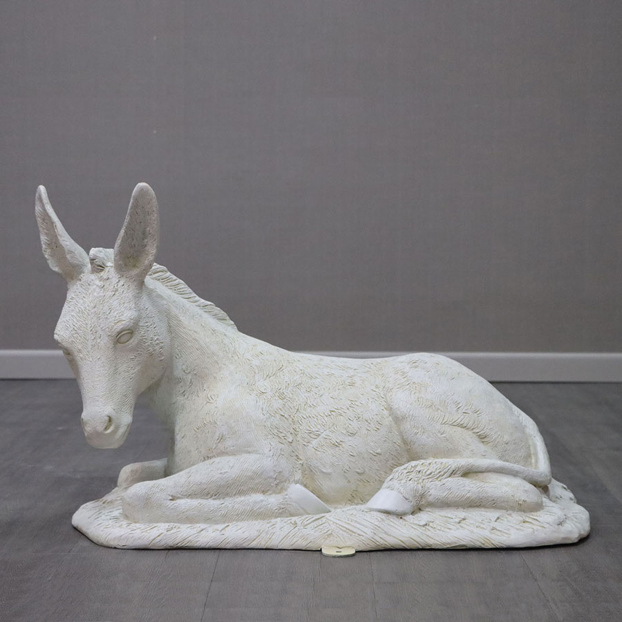 The Ivory look Resting Donkey is one Nativity figure you can't forget. The peaceful animal is shown taking a break after his long journey transporting a pregnant Virgin Mary to Bethlehem. The wonderful large donkey is part of the Ivory Christmas Night Nativity Collection. It is designed by Christmas Night and is constructed of high-quality fiberglass and is hand painted. A unique 8-part manufacturing process is used to create the handsome animal. A clear top coat is applied to protect the paint and ensure years of enjoyment.