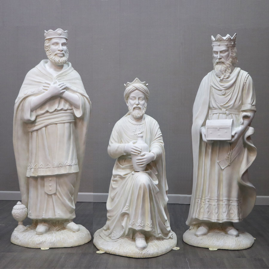 Ivory look Three Kings set is part of the 54-inch Christmas Night Nativity Collection. The beautiful and elegantly crafted pieces depict the Magi that traveled to Bethlehem to honor the Infant Jesus. The Kings are depicted holding gifts for Jesus, which according to tradition consist of gold, Frankincense and myrrh. The awe-inspiring pieces are incredibly detailed and depict King Balthazar, Gaspar and Melchior in the traditional robes of kings.