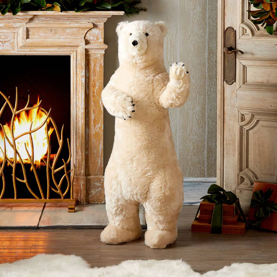 This standing Polar Bear line is known for its luxurious white fur with an incredibly soft feel. This Polar Bear has double the fibers per square inch, giving it a luxurious plush feel. The extra length fibers offer a more realistic look and feel, that you just want to wrap up in your arms. This Polar Bear has weighted feet which give him a solid stance. And since each Polar Bear is handmade, you will receive a unique new friend every time you order one.