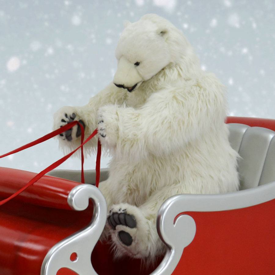 Polar Bear is driving this stylish red and silver sleigh. Led by handcrafted, ride-on Nordic reindeer, this beautiful set creates a charming and magical holiday display for residential, community and commercial environments. Made from chip-resistant fiberglass, the sleigh holds up to 250 lbs.