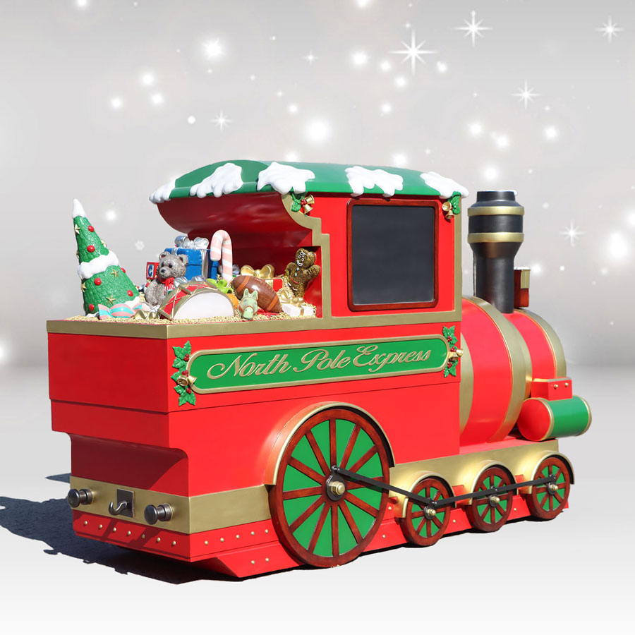 This awe-inspiring 9.5 foot long North Pole Express includes anexquisitely detailed Locomotive with Santa ring his bell. Inspire the imaginations of both young and old with this Christmas display that is ideal for communities, residential areas and businesses. Premium-quality, chip-resistant fiberglass will ensure that this display will provide years and years of delight to the young - and the young at heart.