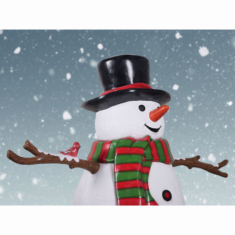Standing 58in. tall, this traditional snowman statue makes for a stunning display during the holidays. While he's a great size for businesses like shopping malls and movie theaters, many homeowners enjoy having this charming fellow in their very own front yard. This statue is made from high-quality resin with a MGO surface treatment.