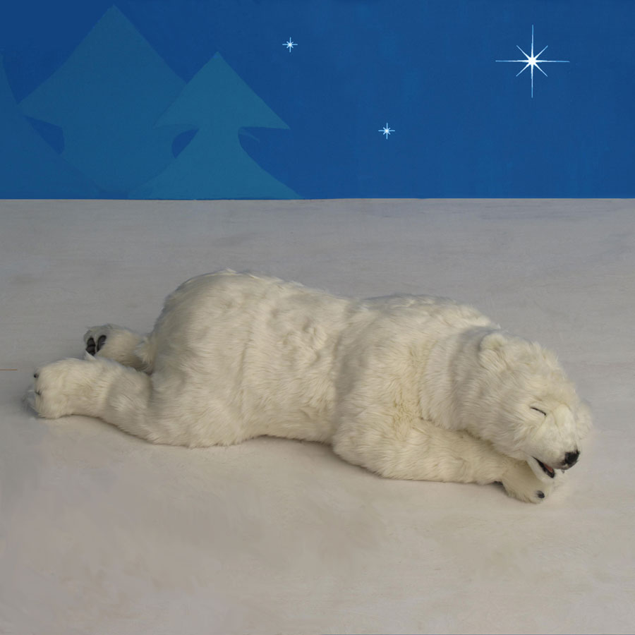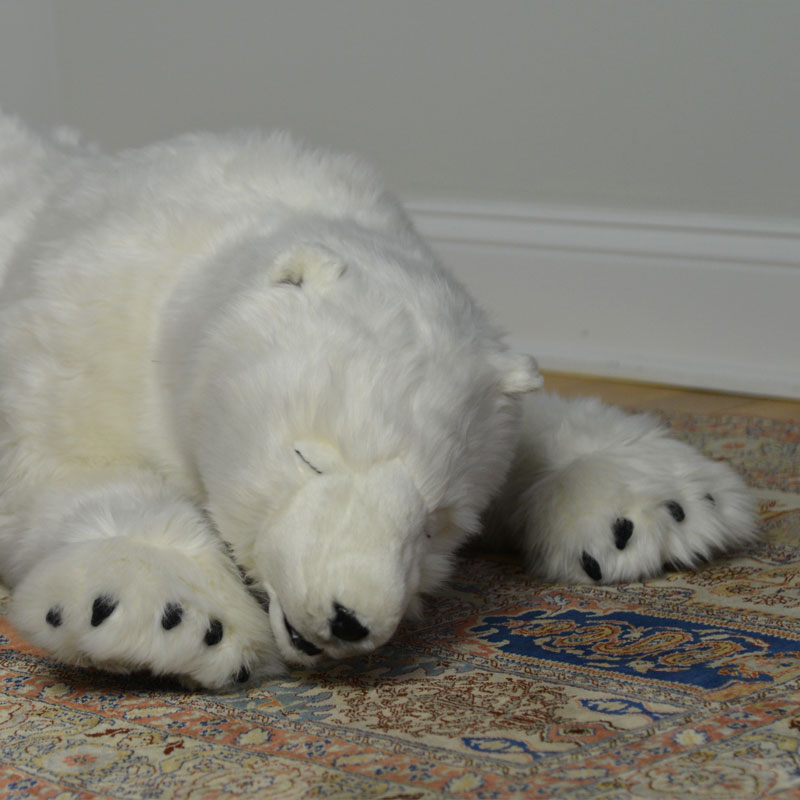 Despite his dozing disposition, this Hansa sleeping polar bear cub makes an exciting splash amidst any indoor winter display. From Hansa's popular Portraits in Nature collection, this sweet plush baby polar bear has been handmade using meticulously hand-cut fabric and is made in small batches to rigorous specifications. This means that your bear will have subtle variations that make it all your own.