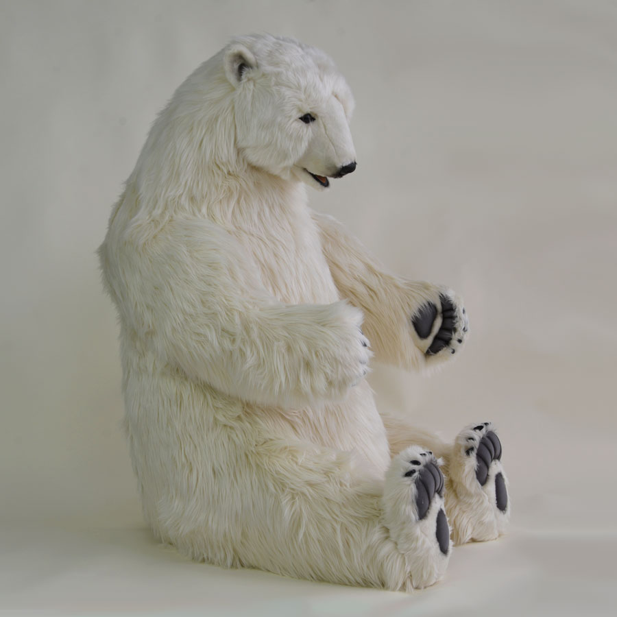 With a lengthy hand-cut fur coat and the sweet yet lifelike face that's unmistakably Hansa, this sitting Hansa Polar Bear brings an extra special finishing touch to your holiday display. As with all animals from Hansa's Portraits in Nature collection, this plush polar bear is hand-stitched, hand-painted and hand-detailed for an heirloom-quality plush. This Polar Bear features an interior structure that allows for some repositioning of his head and legs.