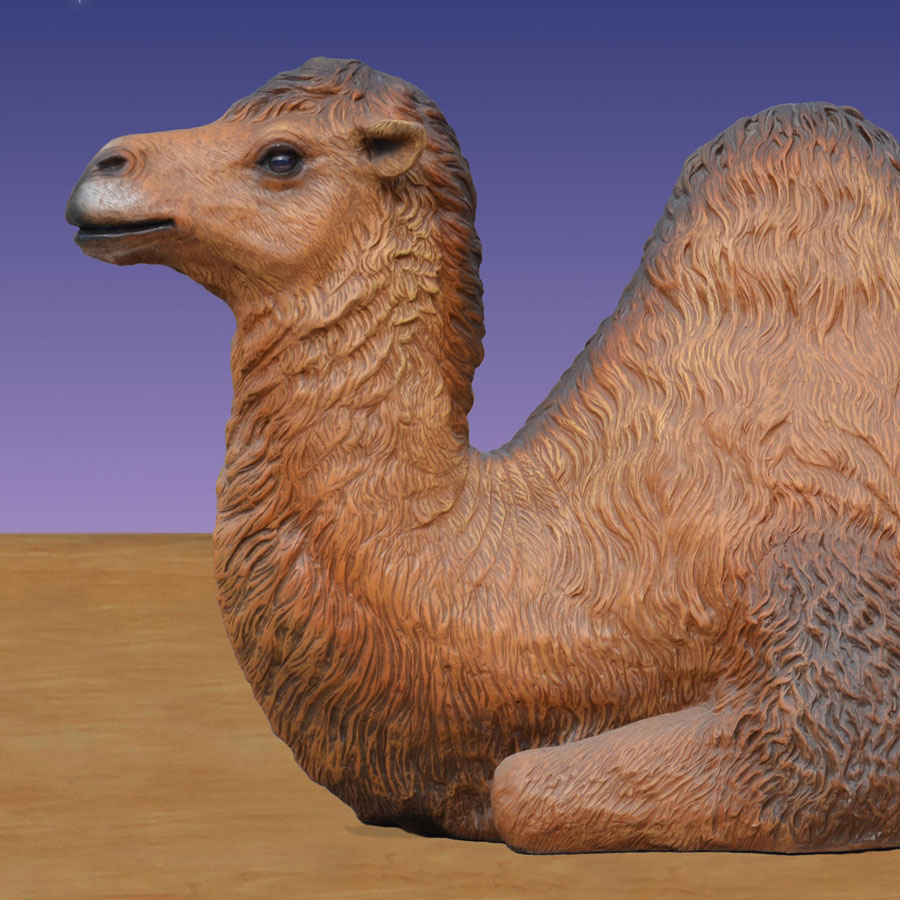 The Resting Camel is made of high-quality fiberglass resin and is carefully crafted for accuracy. It is fully painted with a rich brown finish to match the breed of camel commonly found in the Middle East. The Resting Camel is extremely durable and may be used indoors or out. The piece is carefully painted and sealed to ensure years of use and long-lasting beauty.