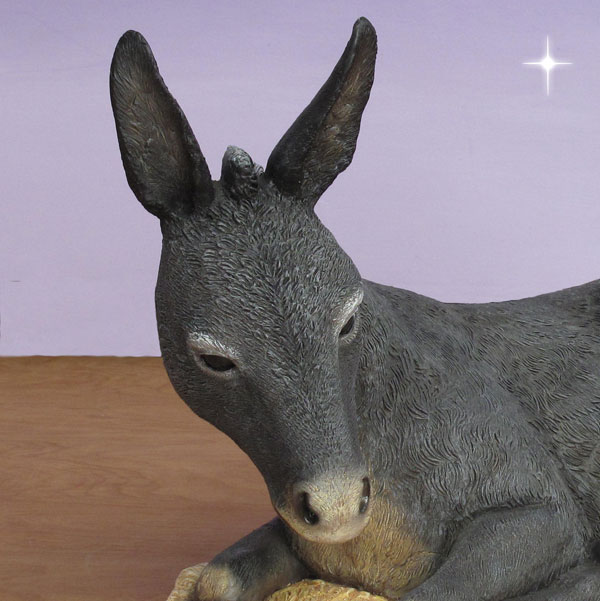 The Resting Donkey is one Nativity figure you can't forget. The peaceful animal is shown taking a break after his long journey transporting a pregnant Virgin Mary to Bethlehem. The wonderful large donkey is part of the Christmas Night Nativity Collection. It is designed by Christmas Night and is constructed of high-quality fiberglass and is hand painted. A unique 8-part manufacturing process is used to create the handsome animal. A clear top coat is applied to protect the paint and ensure years of enjoyment.
