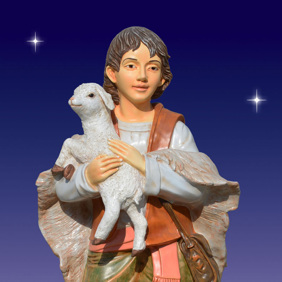 The Shepherd Boy is a classic figure from the Nativity and no community Nativity scene would be complete without a statue of him to represent the innocence and purity of mankind. The Shepherd boy is shown holding a white lamb, a common symbol in the Bible that represents purity and innocence. Order the Shepherd Boy by Christmas Night to complete your Nativity set and create a breathtaking display that will inspire and humble all those who see it.