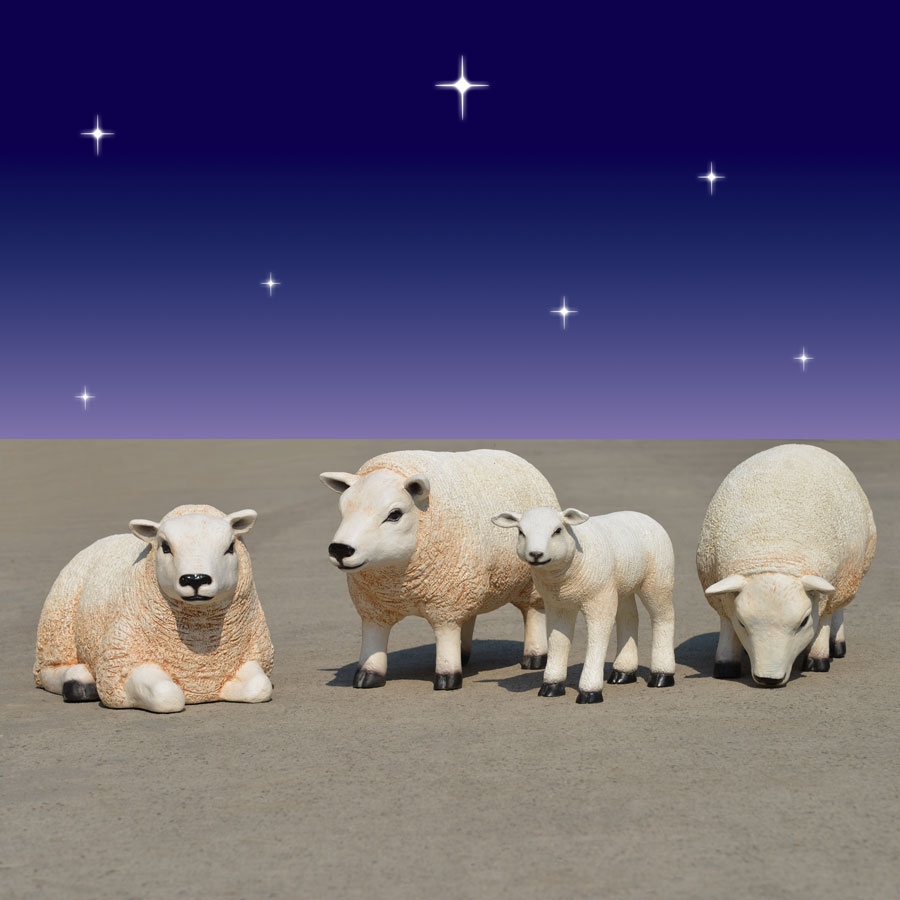 Of all the barnyard animals present at the birth of Jesus, lambs and sheep are the most popular in displays and paintings portraying the important night. Lambs are often used in the Bible to represent purity, while sheep often represent followers of Jesus. Including the 4-piece small Sheep and Lamb Set in your 40 inch scale Nativity scene is a great way to add subtle meaning to the display.