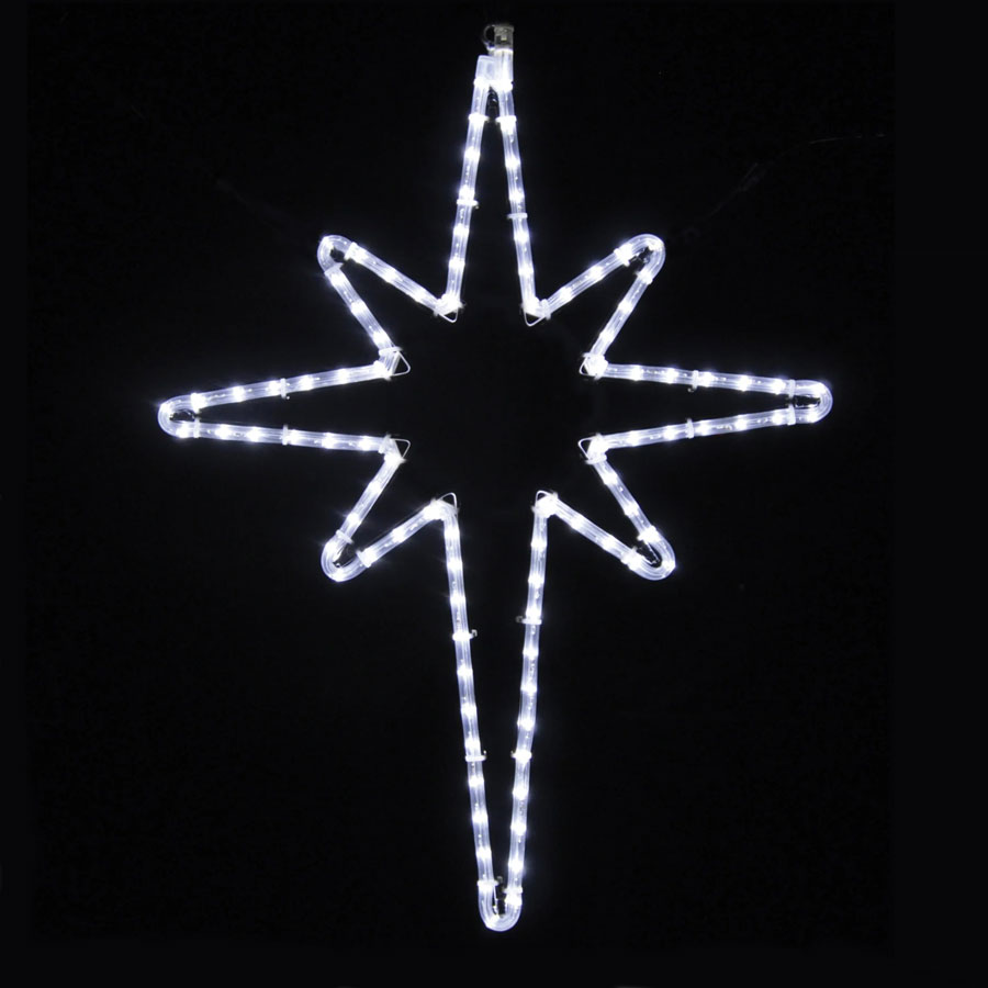 Draw attention to your nativity scene with this bright LED Star of Bethlehem by Holiday Lighting Specialists. Handmade with commercial-grade pure white LED rope lights, this light-up star brings a spectacular finishing touch to any nativity narrative. This star is for hanging only.